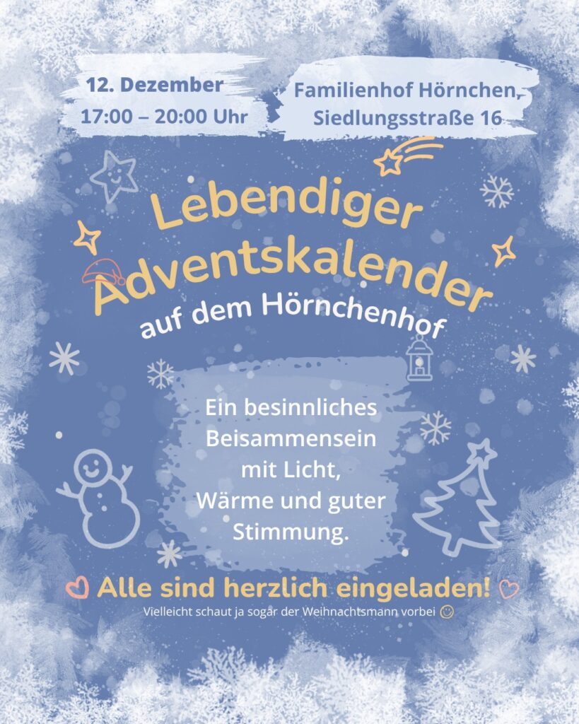 Der Dezember bringt jedes Jahr besondere Momente mit sich – kleine Funken von Wärme, die die dunkle Jahreszeit hell machen. Einer dieser Momente öffnet sich am 12. Dezember bei uns auf dem Hörnchenhof: ein lebendiges Adventskalender-Türchen, gefüllt mit Licht, Lachen und Gemeinschaft.
